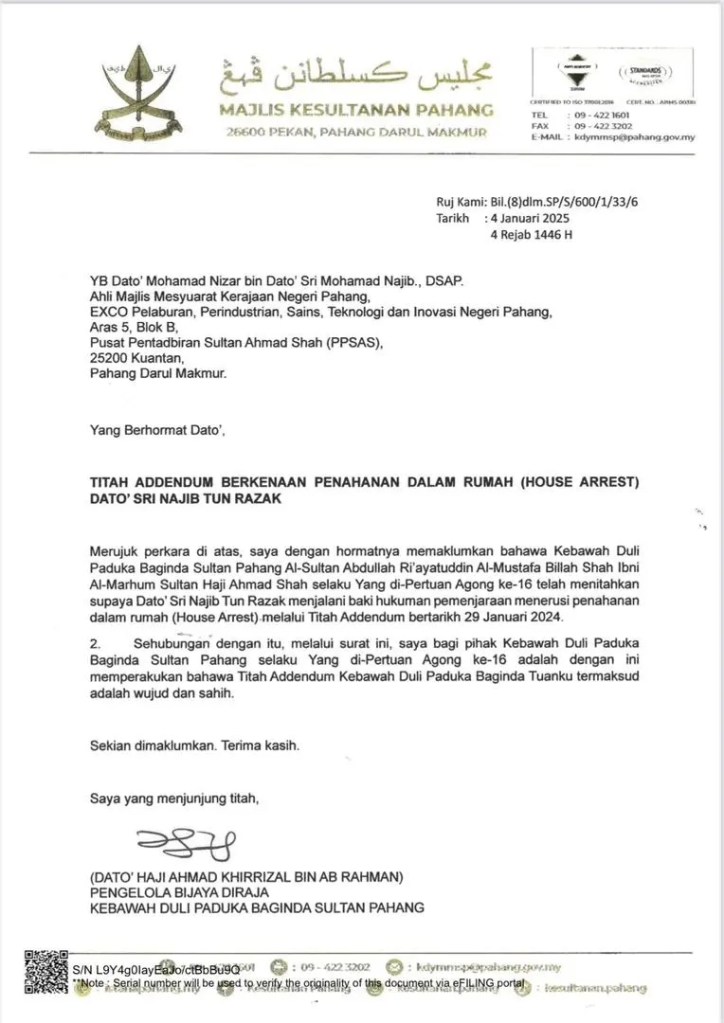 As in 2018, this decision came after a validly convened meeting of the Pardons Board. Yet unlike in Anwar’s case, the Titah was met with silence. The Prime Minister’s Office offered no acknowledgment. The Attorney General did not act to implement it. For weeks, the public was told it was mere rumour. It was only after the Pahang Palace issued a formal confirmation that the Addendum’s existence was officially recognised.