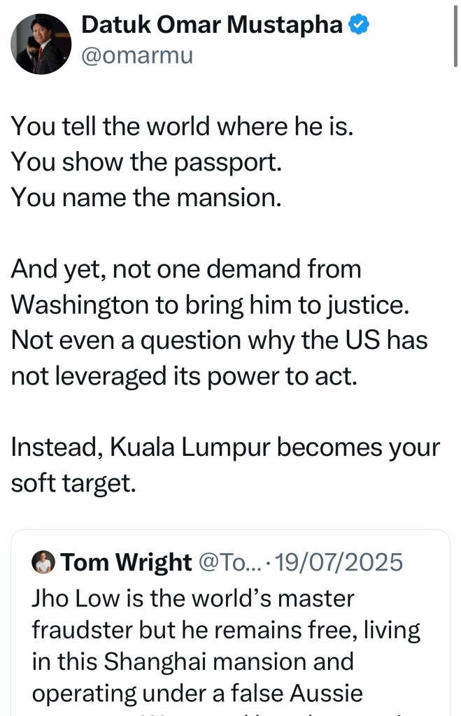 When they published a thread identifying what they claimed to be Jho Low’s false passport and mapped his villa in Shanghai, the implications were serious. The man at the centre of the world’s most audacious financial scandal is no longer hiding. He is living in plain sight. His location is not speculative. It is known. By them. By the Department of Justice. And most likely, by many others with the power to act.